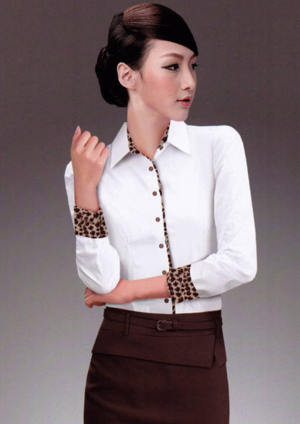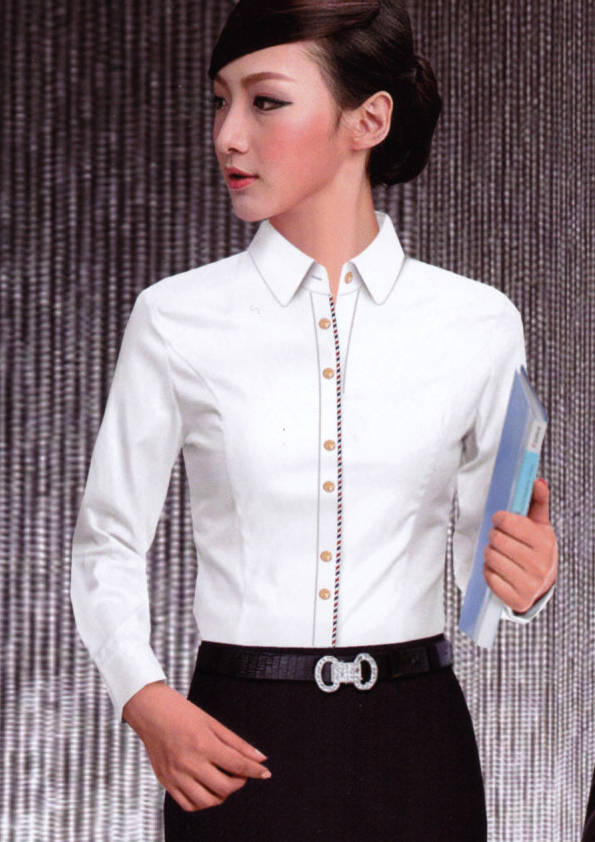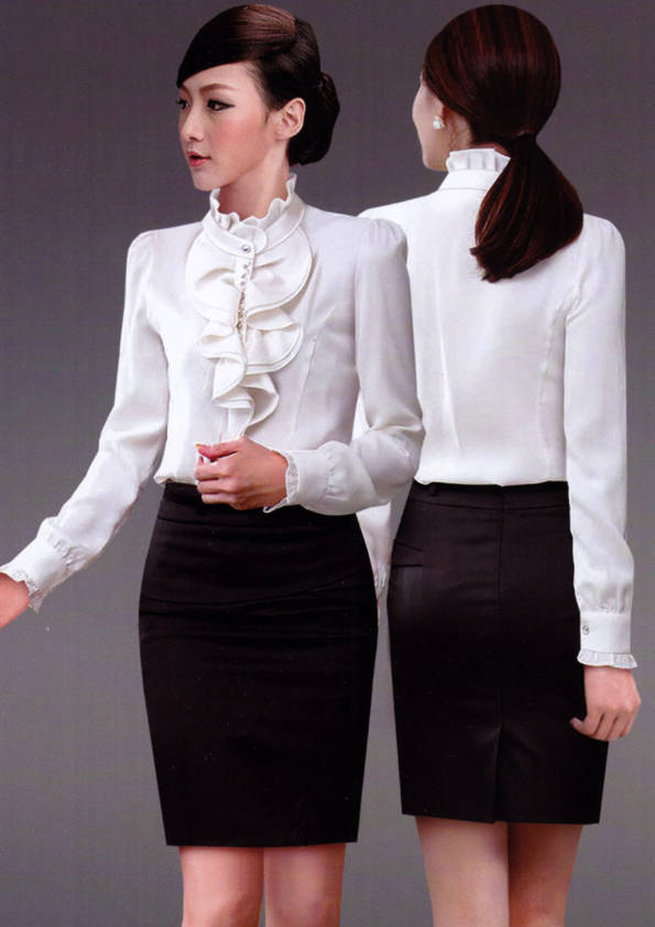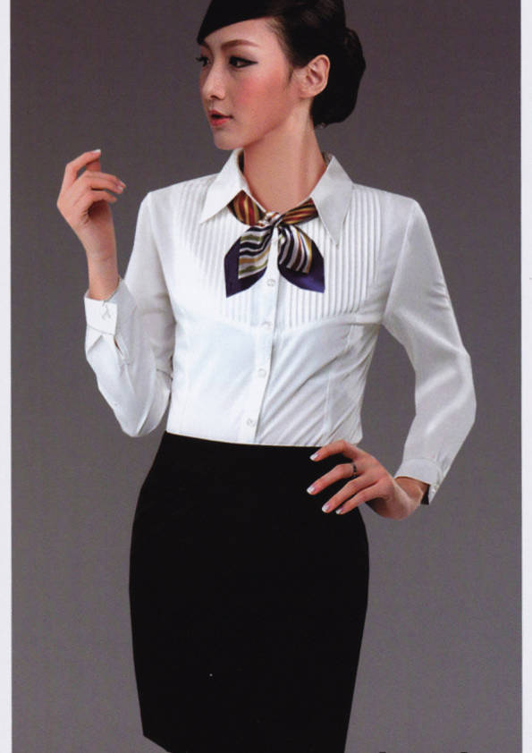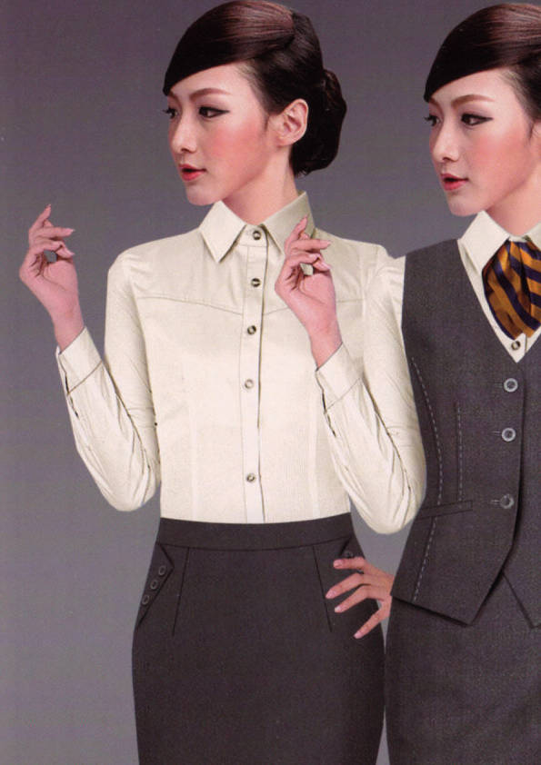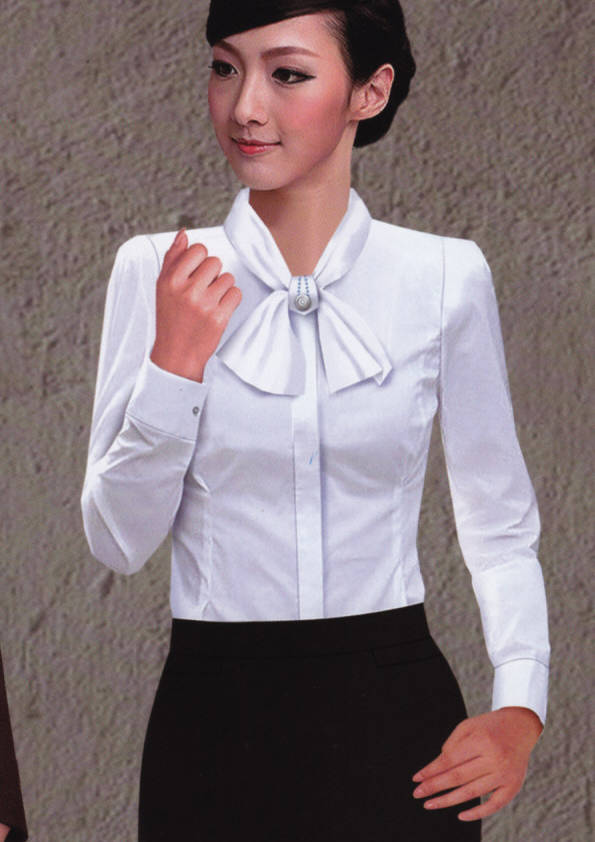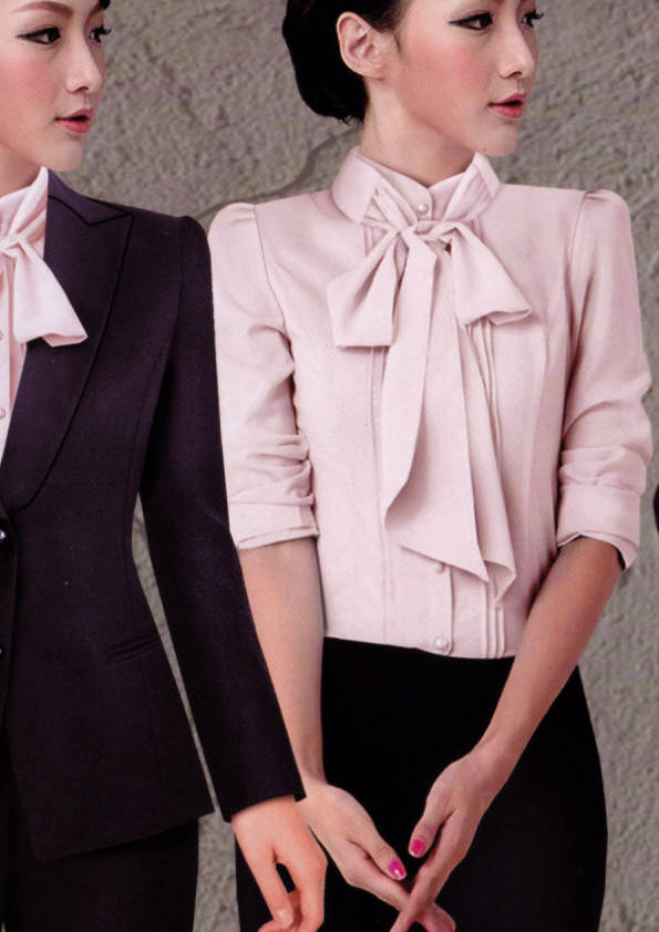 女襯衫是每一位女性必備的服裝,也是款式變化最多、穿用時間最長、最能展現女性風采的服裝。襯衫的顏色可以是多種多樣的,只要與套裝相匹配就可以了。白色、黃白色和米色與大多數套裝都能搭配。絲綢是最好的襯衫面料,但是干洗起來可能會貴一些。另一種選擇就是純棉,但要保證漿過并熨燙平整。在正式場合,穿著要忌短、忌露、忌透。