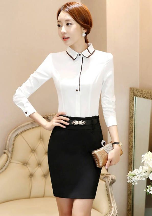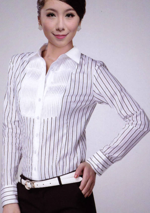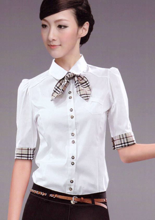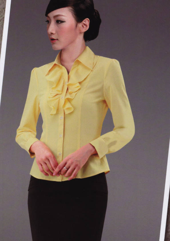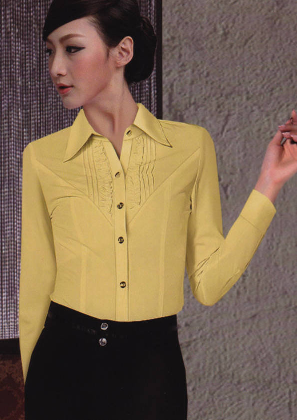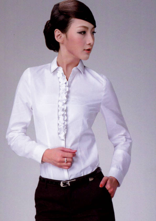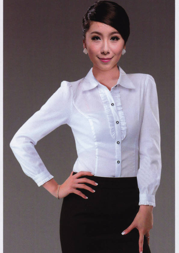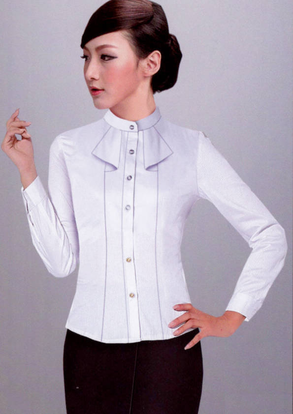 女襯衫是每一位女性必備的服裝,也是款式變化最多、穿用時間最長、最能展現女性風采的服裝。襯衫的顏色可以是多種多樣的,只要與套裝相匹配就可以了。白色、黃白色和米色與大多數套裝都能搭配。絲綢是最好的襯衫面料,但是干洗起來可能會貴一些。另一種選擇就是純棉,但要保證漿過并熨燙平整。在正式場合,穿著要忌短、忌露、忌透。