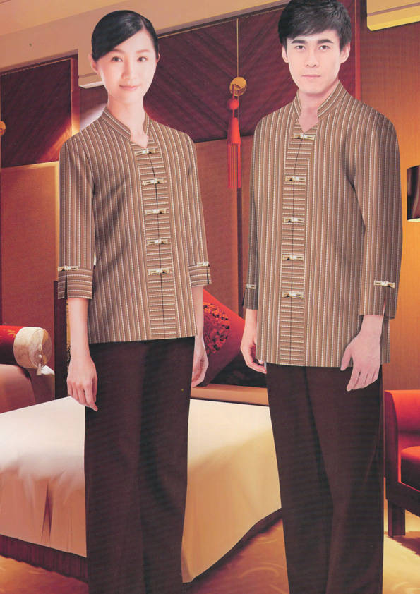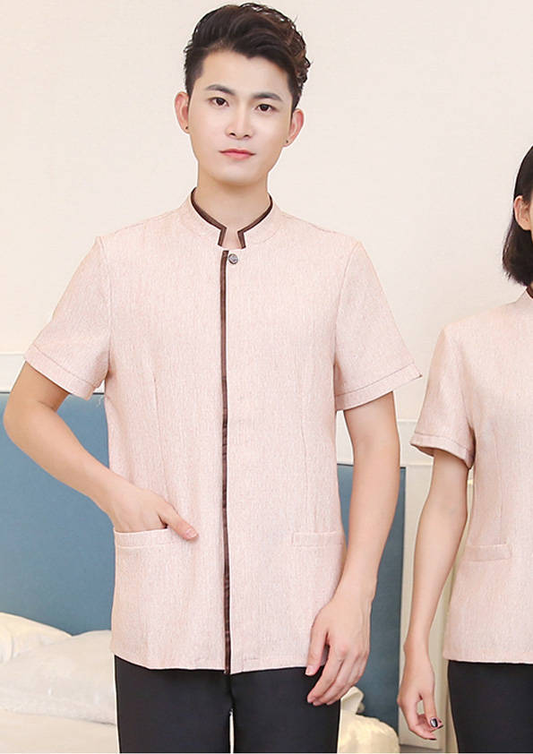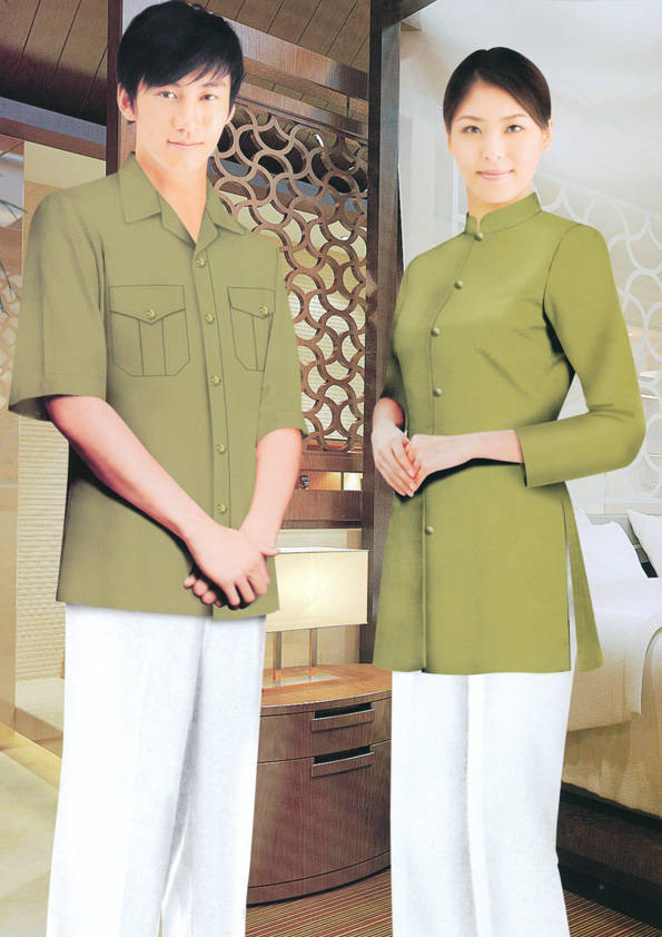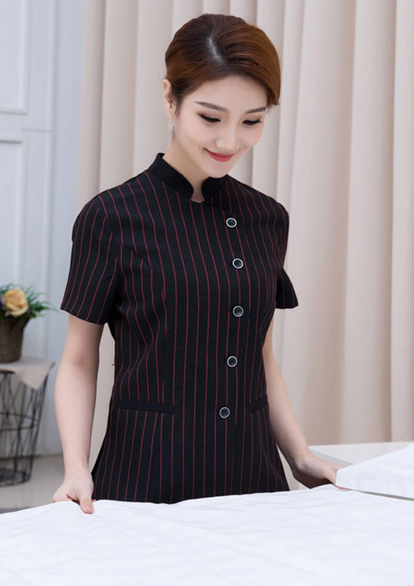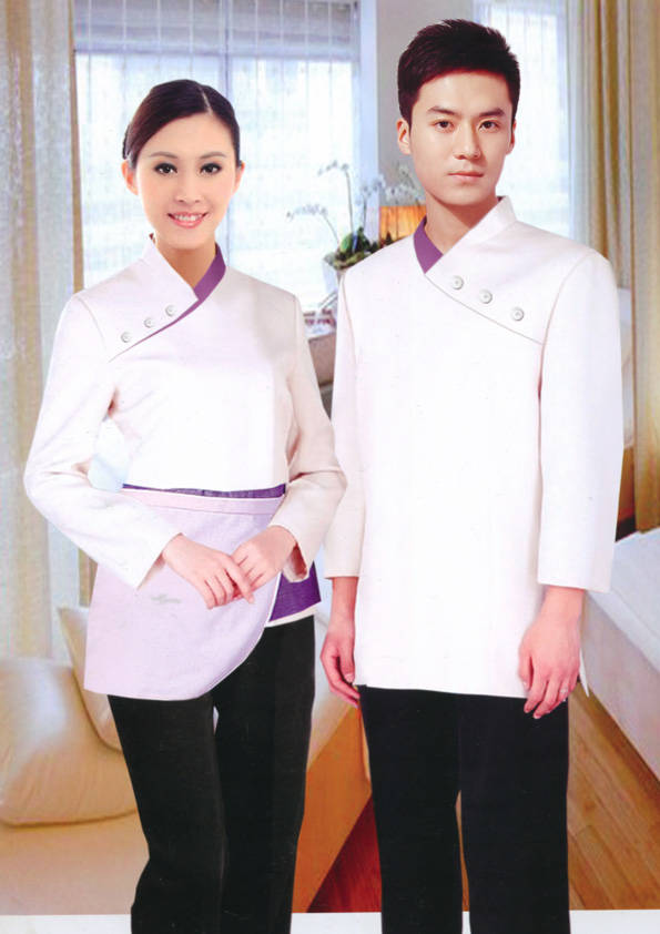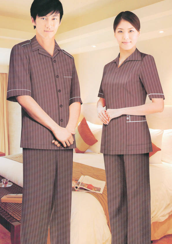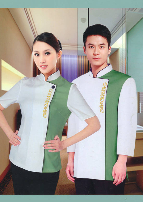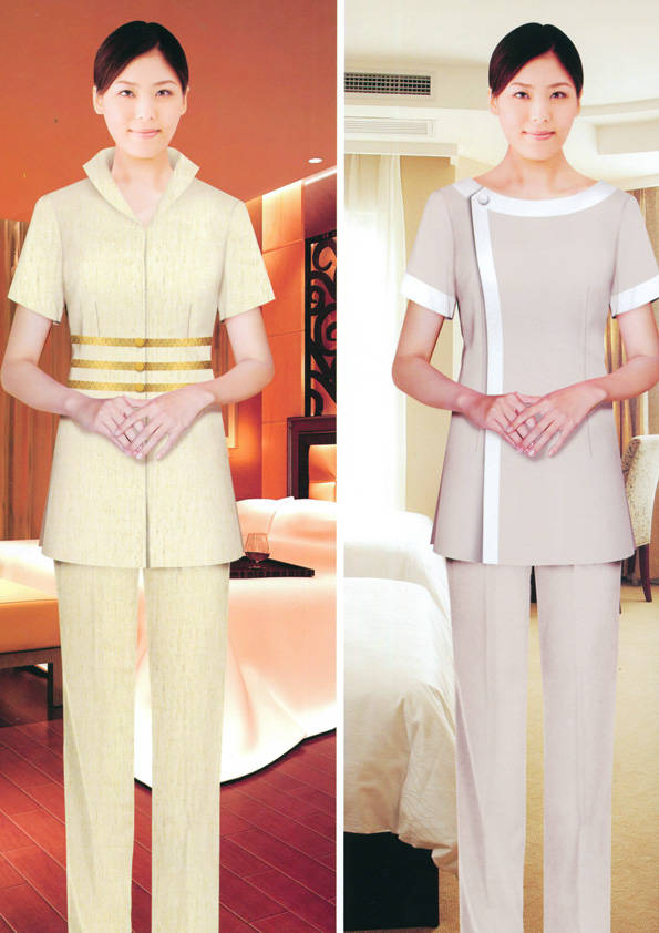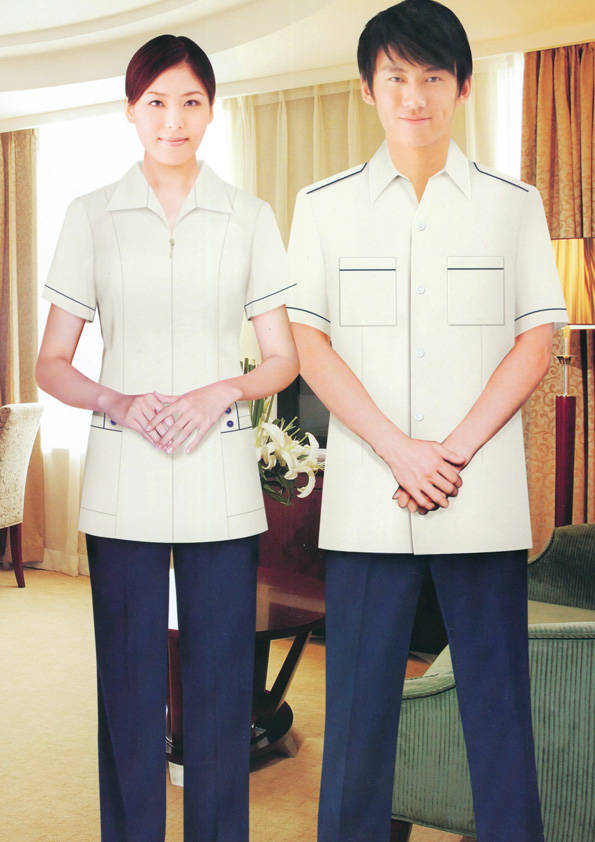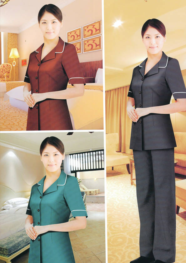 客房服務員主要指為賓館或酒店的客房提供清潔及為住戶提供生活幫助的服務人員。其主要工作包括:清潔并檢查客房、補充用品、為客人提供服務 、清潔用品使用及保養(yǎng)、檢查客人遺留物及客房內(nèi)貴重物品、確保工作區(qū)域的安全。保潔服裝應該注意以下幾個問題。1、服裝的色彩與酒店裝修相搭配。2、服裝的面料選定。3、服裝的款式一定要舒適,方便活動。4、服裝的樣式與酒店風格相搭配。5、服裝要成系列感。