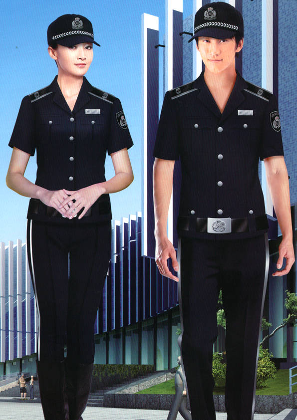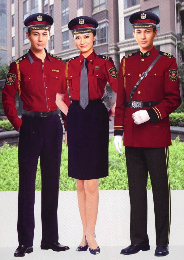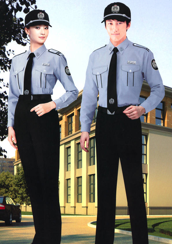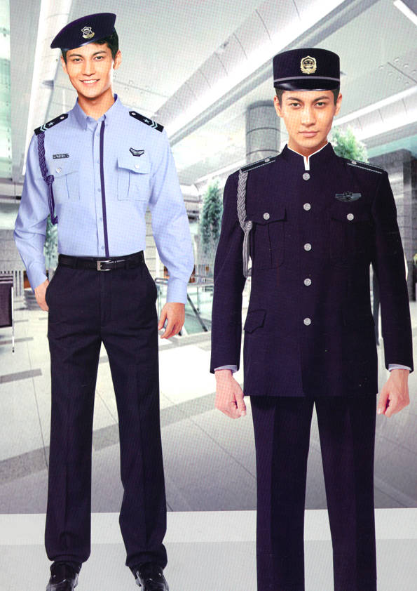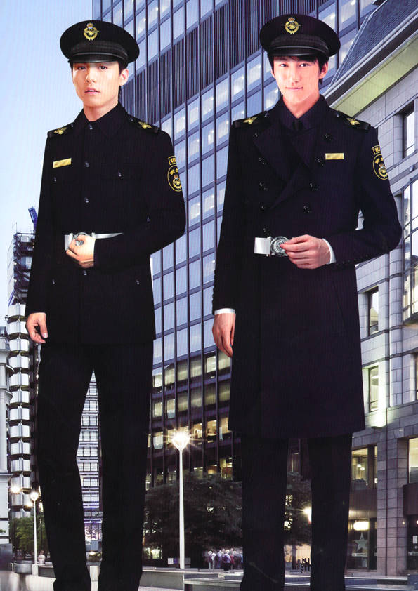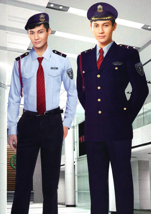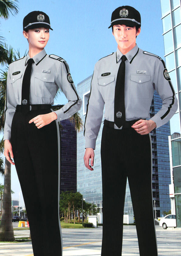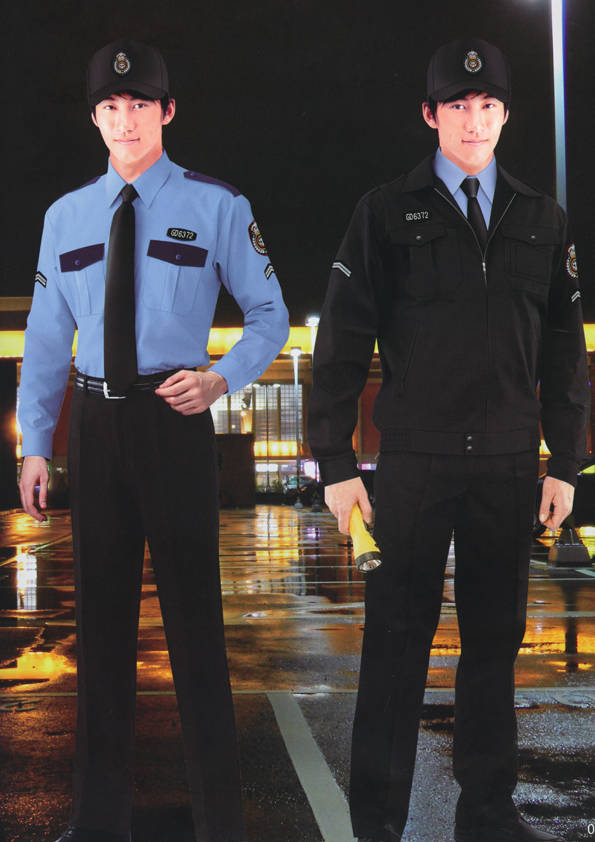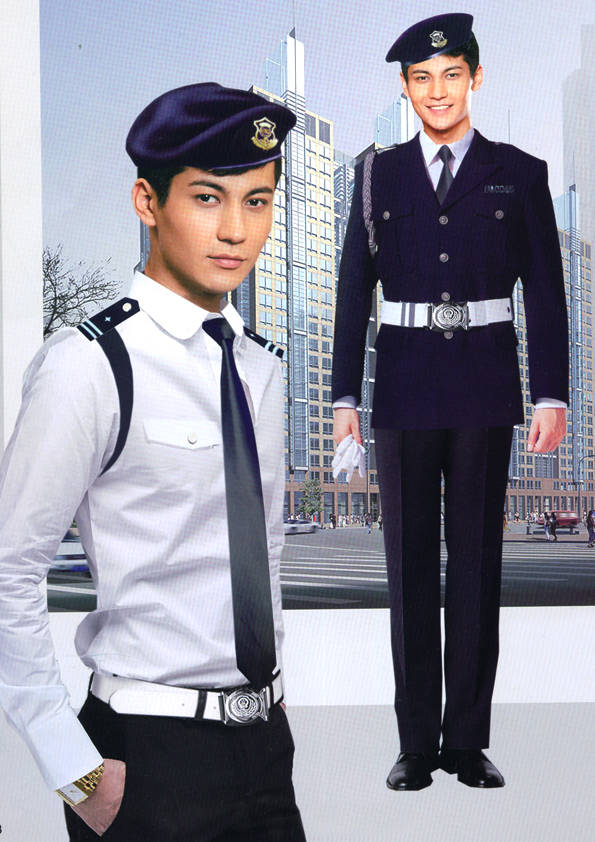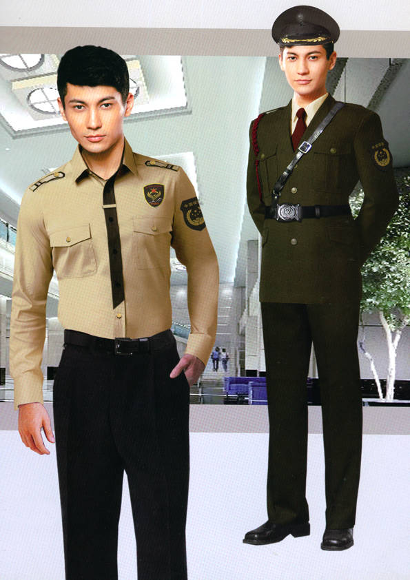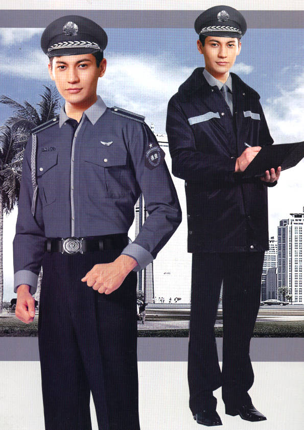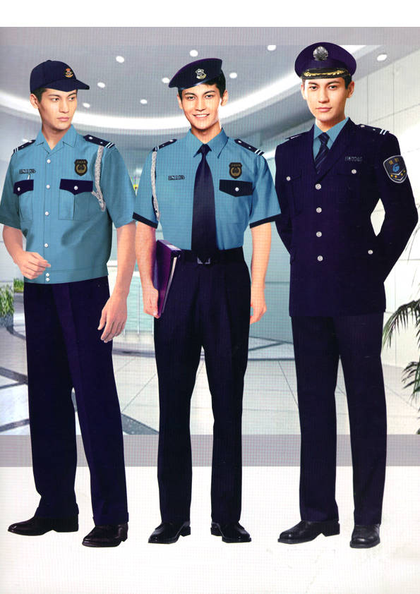 保安員服裝分為:春秋冬常服、執勤服、押運服、訓練服、長短袖襯衣、夏褲、女裙、棉服等。帽子分為:大檐帽、卷檐帽、工作帽、貝雷帽、棉帽等。鞋分為:單皮鞋、棉皮鞋、押運員高筒皮靴、女保安員高筒皮靴、訓練用鞋等。配飾標志為:帽徽、肩章、臂章、保安從業單位標志號牌、專用鈕扣、專用腰帶扣、領帶、領帶夾等。在治安環境越來越好的今天,“保安”這一崗位不再是單一的崗位了,現在越來越多的企業、單位把“保安”的崗位用途增強了,不僅僅只是用來擔任安保工作,更是用來做為一個體現形象及服務的崗位,所以現在有部份企業、單位的保安服裝也越來越時尚、簡潔、大方了,往那里一站猶如一道風景!