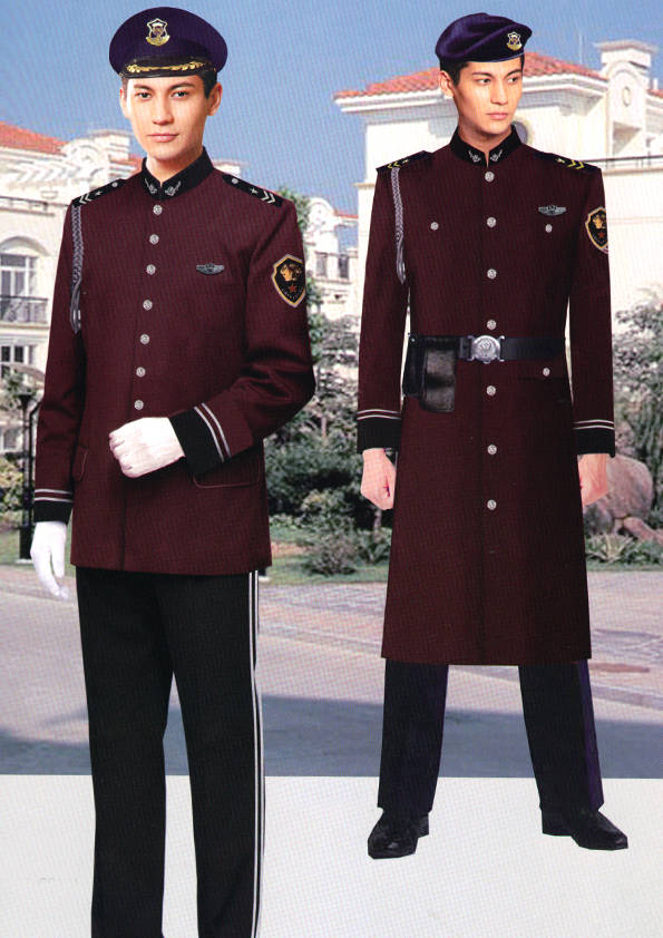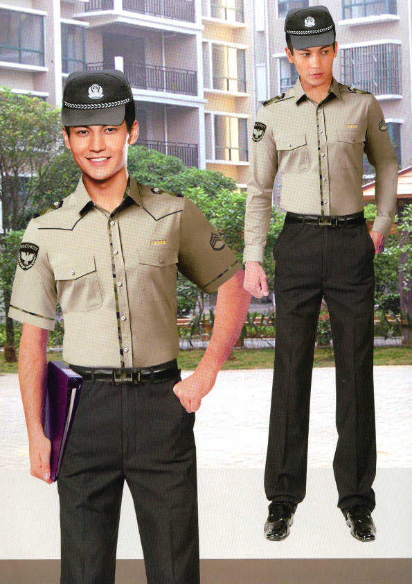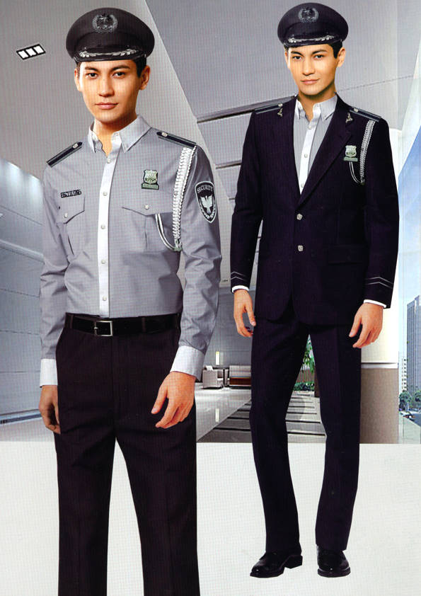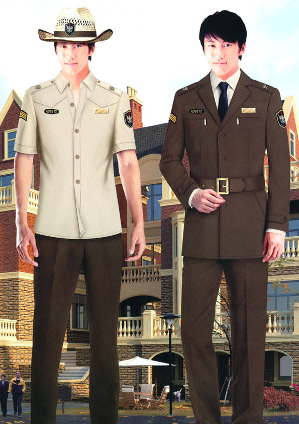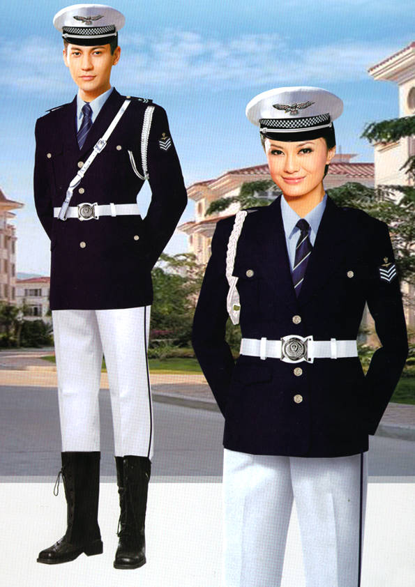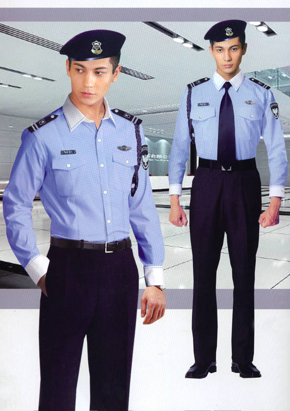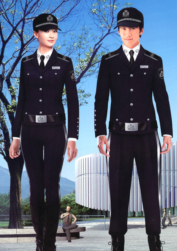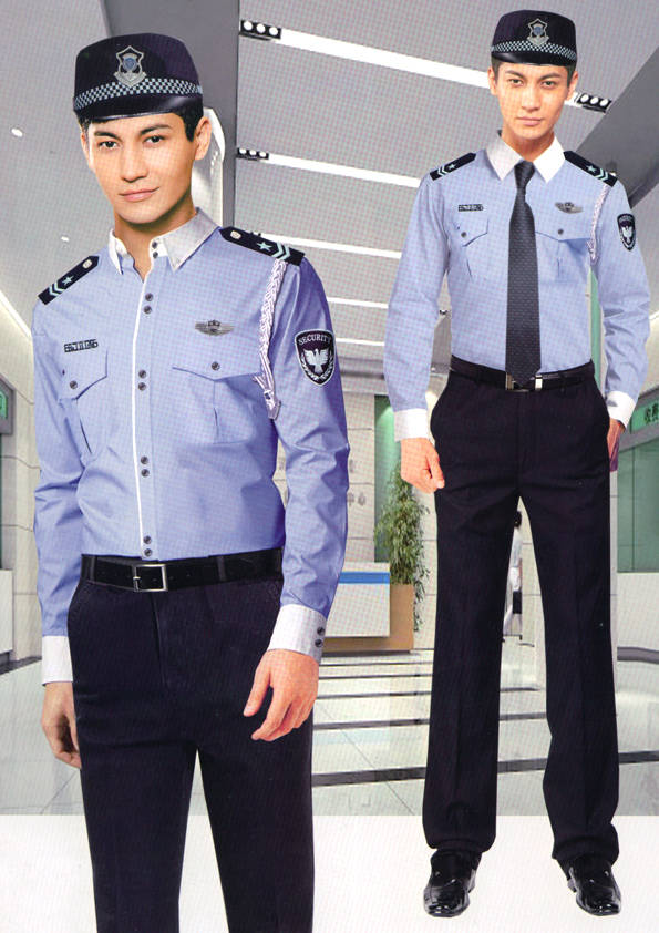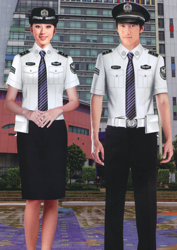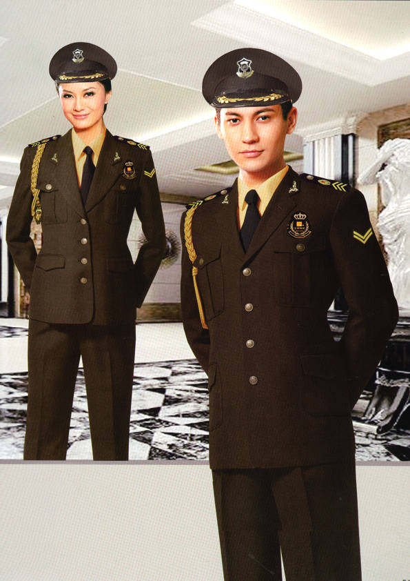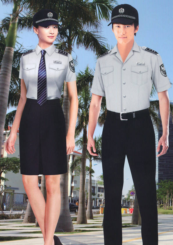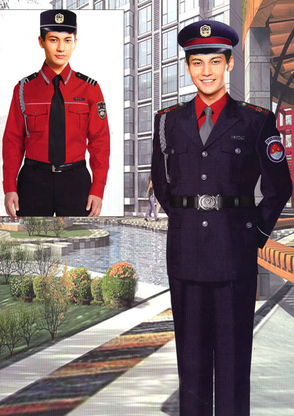 保安員服裝分為:春秋冬常服、執勤服、押運服、訓練服、長短袖襯衣、夏褲、女裙、棉服等。帽子分為:大檐帽、卷檐帽、工作帽、貝雷帽、棉帽等。鞋分為:單皮鞋、棉皮鞋、押運員高筒皮靴、女保安員高筒皮靴、訓練用鞋等。配飾標志為:帽徽、肩章、臂章、保安從業單位標志號牌、專用鈕扣、專用腰帶扣、領帶、領帶夾等。在治安環境越來越好的今天,“保安”這一崗位不再是單一的崗位了,現在越來越多的企業、單位把“保安”的崗位用途增強了,不僅僅只是用來擔任安保工作,更是用來做為一個體現形象及服務的崗位,所以現在有部份企業、單位的保安服裝也越來越時尚、簡潔、大方了,往那里一站猶如一道風景!