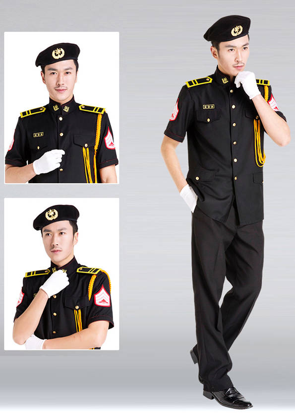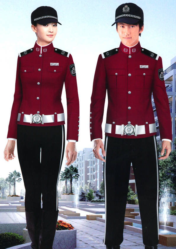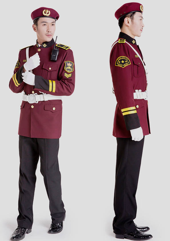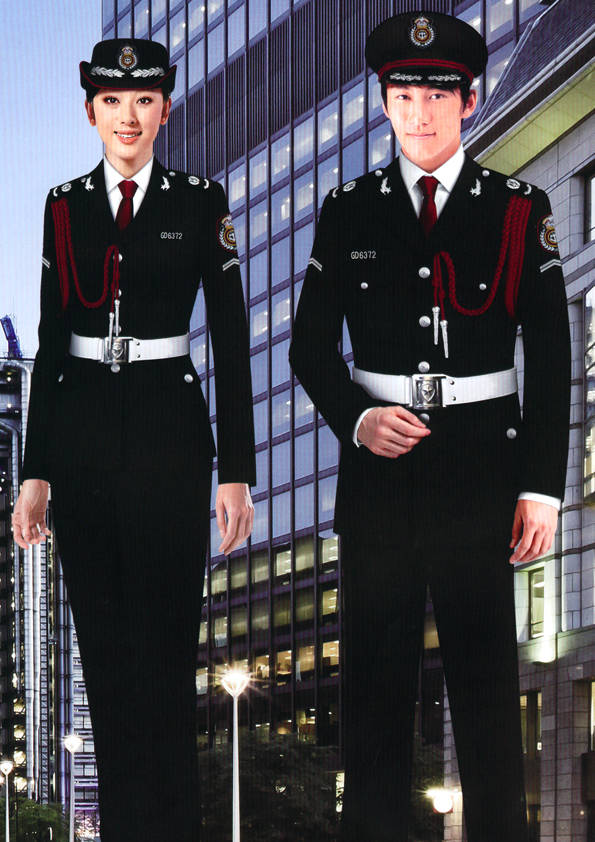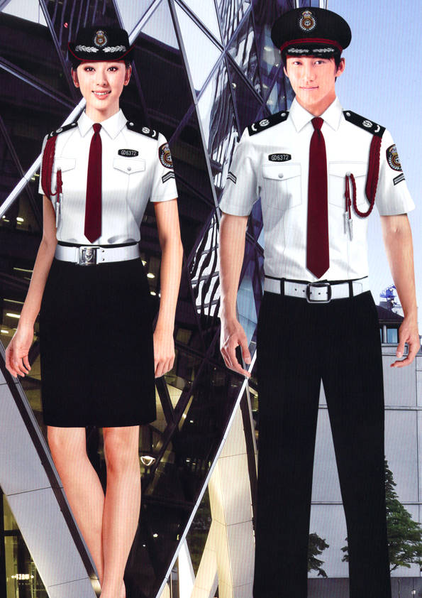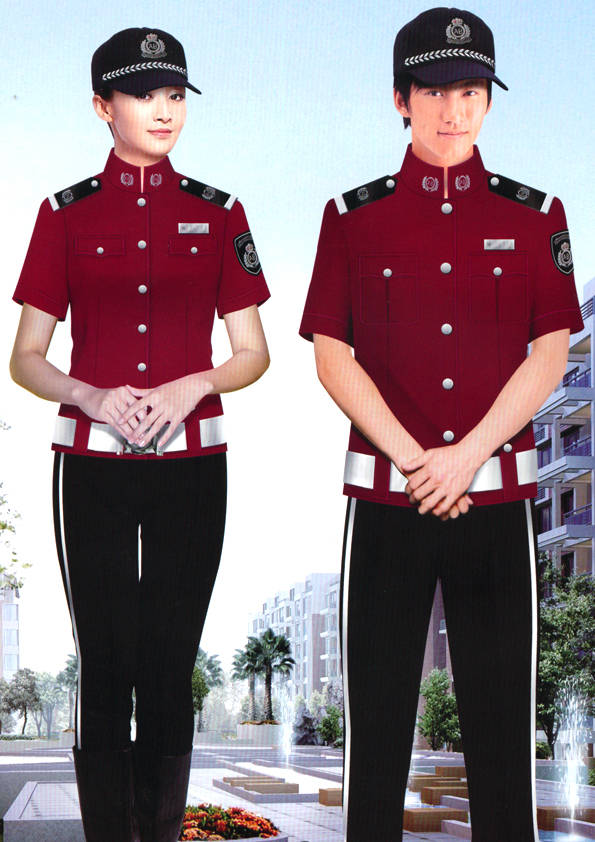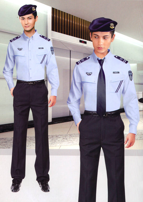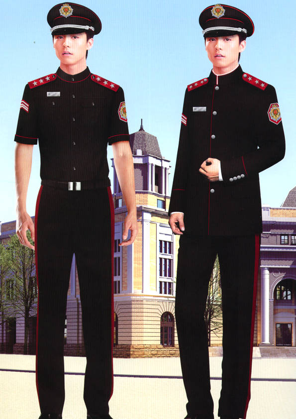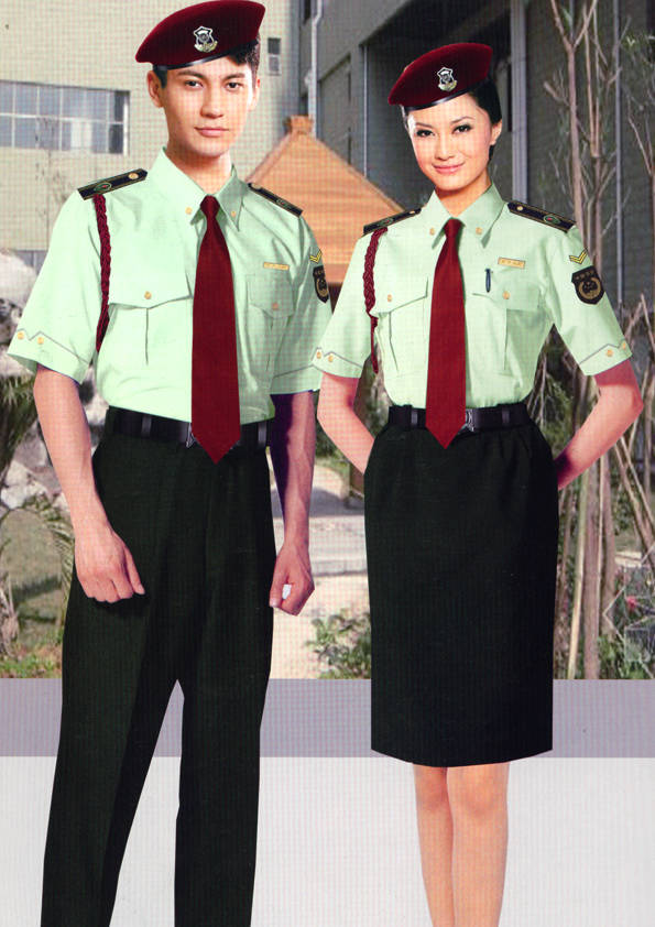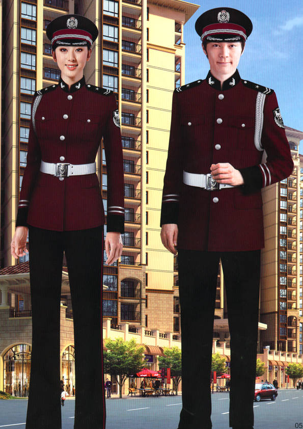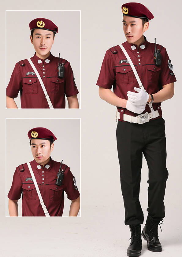 保安員服裝分為:春秋冬常服、執勤服、押運服、訓練服、長短袖襯衣、夏褲、女裙、棉服等。帽子分為:大檐帽、卷檐帽、工作帽、貝雷帽、棉帽等。鞋分為:單皮鞋、棉皮鞋、押運員高筒皮靴、女保安員高筒皮靴、訓練用鞋等。配飾標志為:帽徽、肩章、臂章、保安從業單位標志號牌、專用鈕扣、專用腰帶扣、領帶、領帶夾等。在治安環境越來越好的今天,“保安”這一崗位不再是單一的崗位了,現在越來越多的企業、單位把“保安”的崗位用途增強了,不僅僅只是用來擔任安保工作,更是用來做為一個體現形象及服務的崗位,所以現在有部份企業、單位的保安服裝也越來越時尚、簡潔、大方了,往那里一站猶如一道風景!