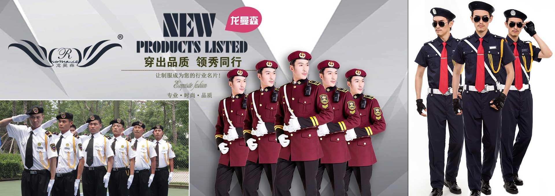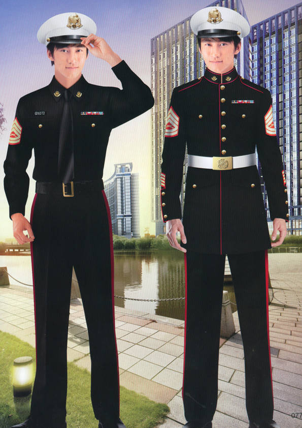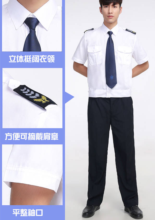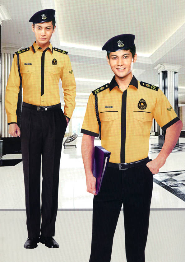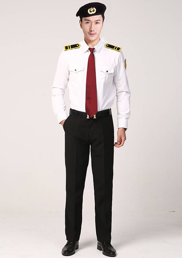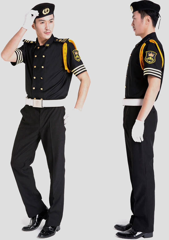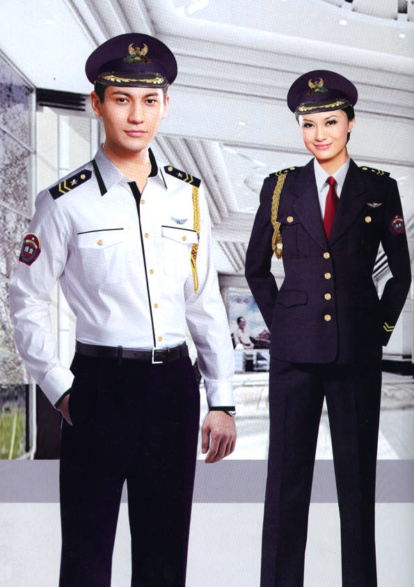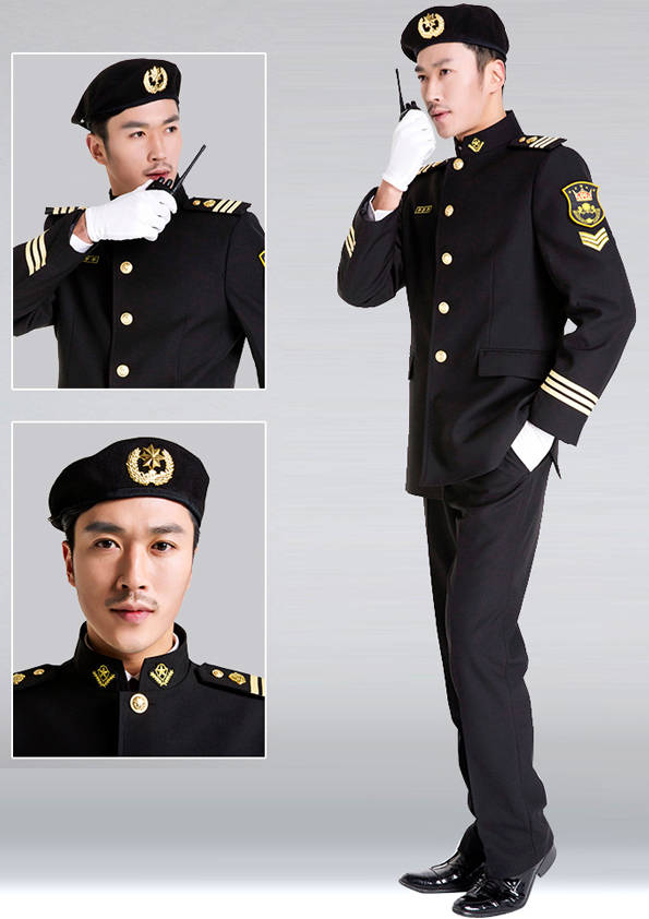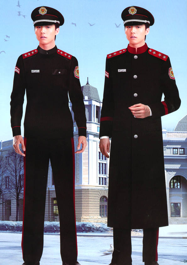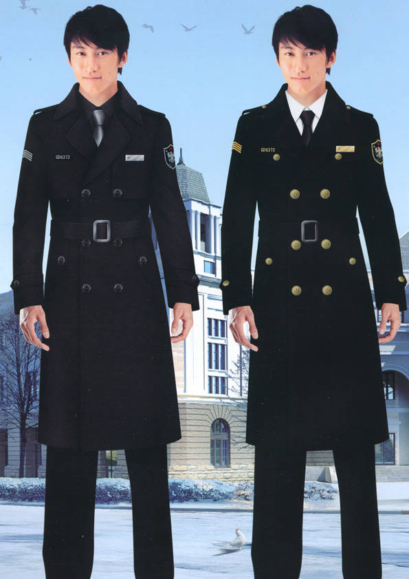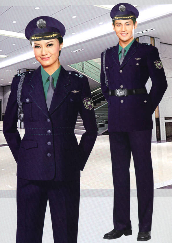 保安員服裝分為:春秋冬常服、執勤服、押運服、訓練服、長短袖襯衣、夏褲、女裙、棉服等。帽子分為:大檐帽、卷檐帽、工作帽、貝雷帽、棉帽等。鞋分為:單皮鞋、棉皮鞋、押運員高筒皮靴、女保安員高筒皮靴、訓練用鞋等。配飾標志為:帽徽、肩章、臂章、保安從業單位標志號牌、專用鈕扣、專用腰帶扣、領帶、領帶夾等。在治安環境越來越好的今天,“保安”這一崗位不再是單一的崗位了,現在越來越多的企業、單位把“保安”的崗位用途增強了,不僅僅只是用來擔任安保工作,更是用來做為一個體現形象及服務的崗位,所以現在有部份企業、單位的保安服裝也越來越時尚、簡潔、大方了,往那里一站猶如一道風景!